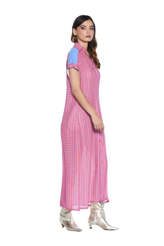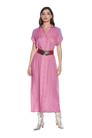 Abito LURGER lungo mezza manica con risvolto chemisier fantasia cravatta