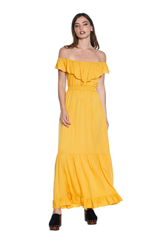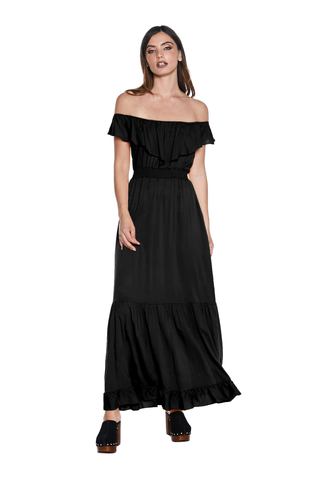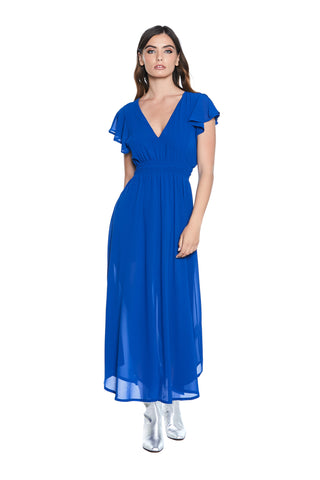 Abito CONNOR lungo mezza manica con volant scollo v profondo con p.smock più spacco