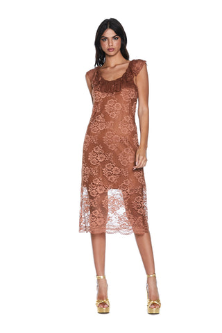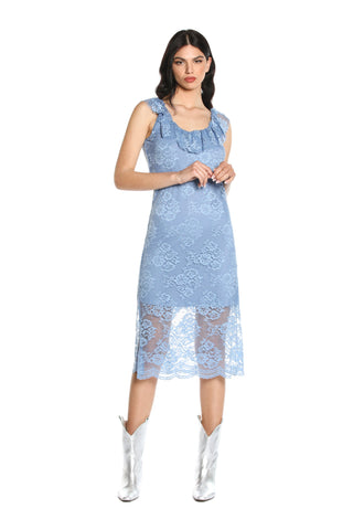 Abito GRUMA midi S/M con sottoveste più rouches pizzo