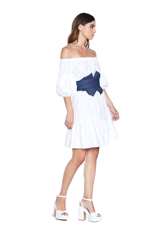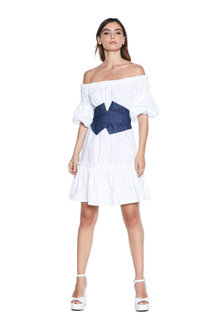 Abito MUYLLERS corto M.3/4 a sbuffo scollo barca con arricci più cintura