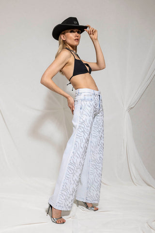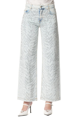 Jeans ELLELONG_24 V.Media con Strass Animalier Straight Fit L.Bleach Denim