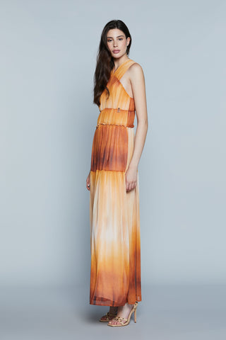 Abito HEDY_A Lungo con Spalline Sc.Americana con Arricci più Rouches F.Degrade'