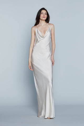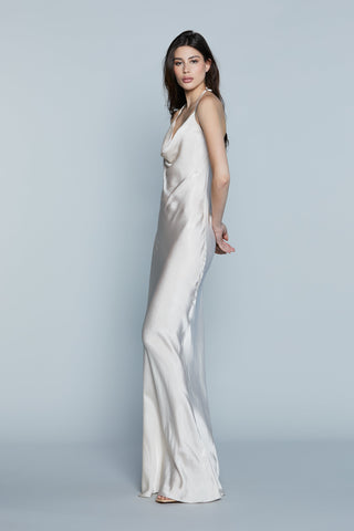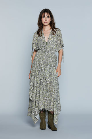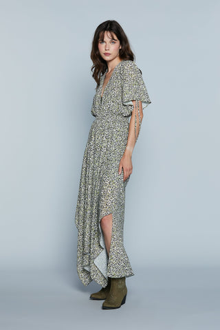Abito SIERO Lungo S/M Sc.Cuore con Nodo più Goccia con Balze più Spacco F.Fiori