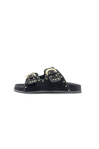 Sandali BOEM Bassi con Doppio Cinturino più Fibbie più Borchie Ecopelle