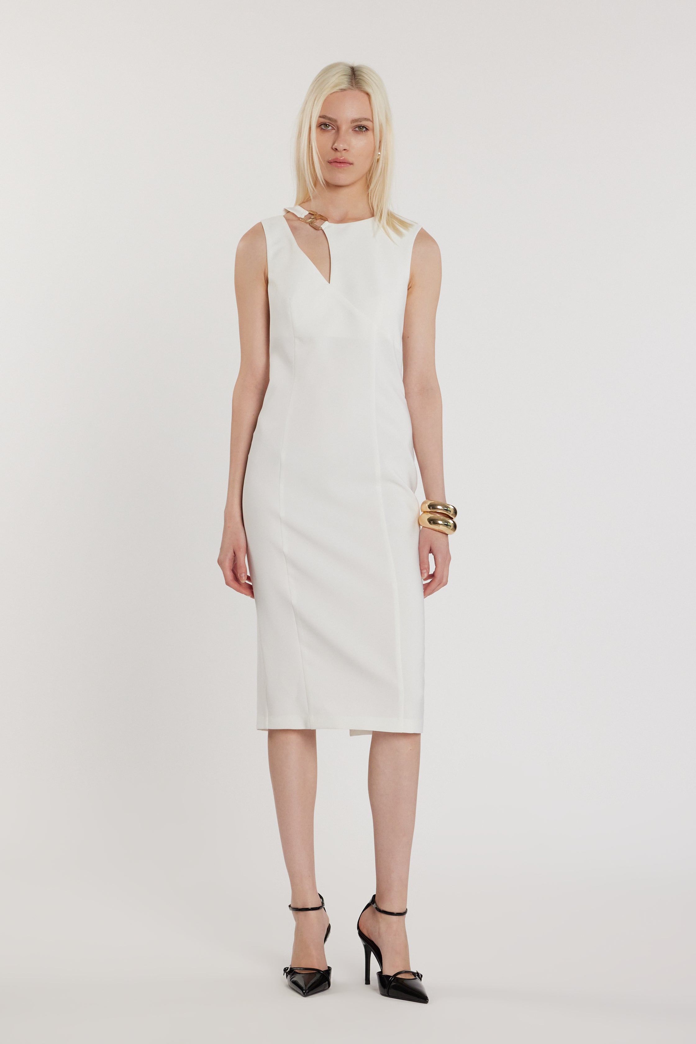 Abito CECILE midi smanicato con apertura più passante più spacco