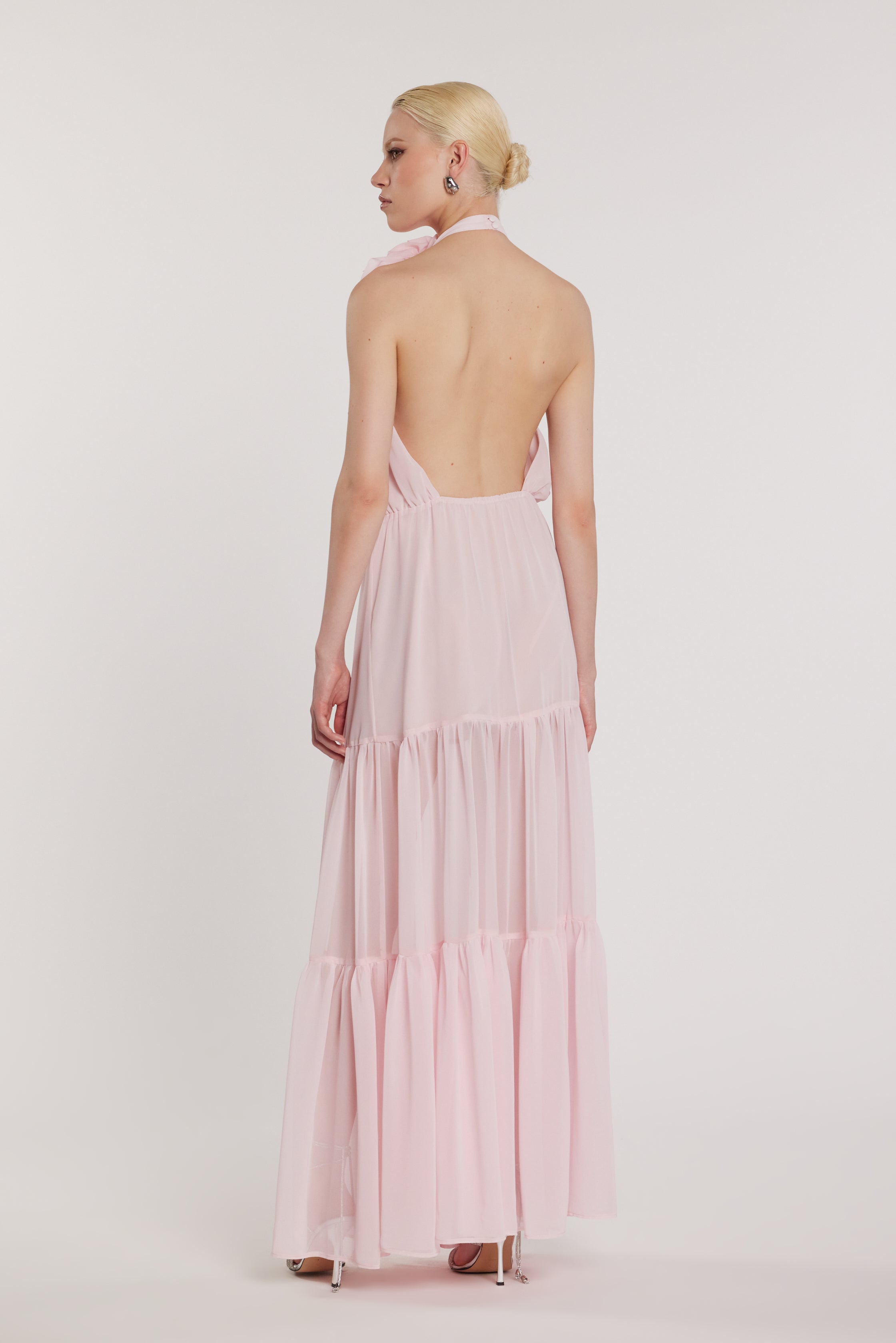 Abito Tonique lungo con balze e spilla a fiore, un modello romantico e sofisticato che dona movimento e leggerezza. Le balze creano fluidità, mentre la spilla a fiore aggiunge un dettaglio couture elegante. Perfetto per cocktail, eventi di sera o occasioni speciali, trasmette femminilità e charme raffinato.