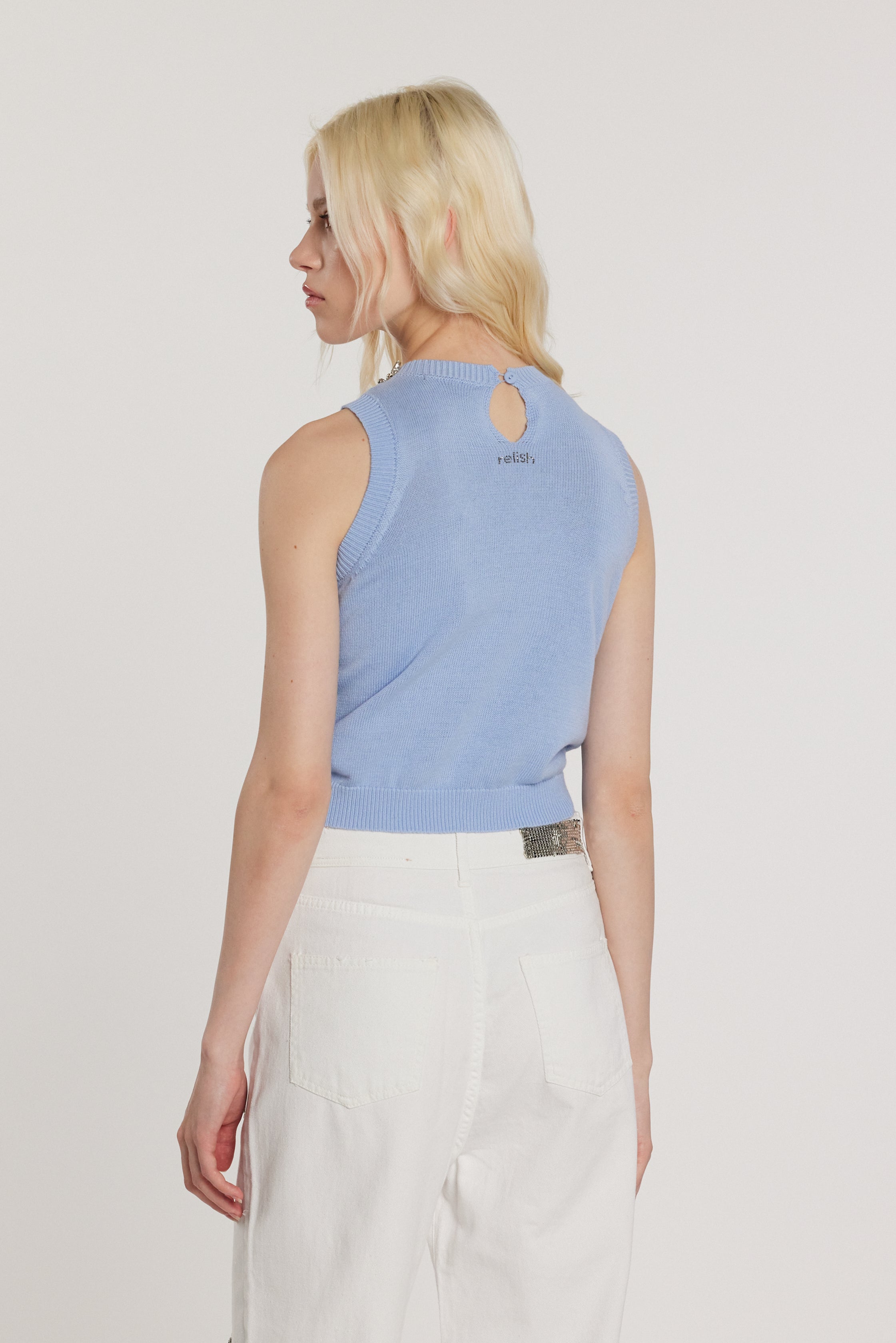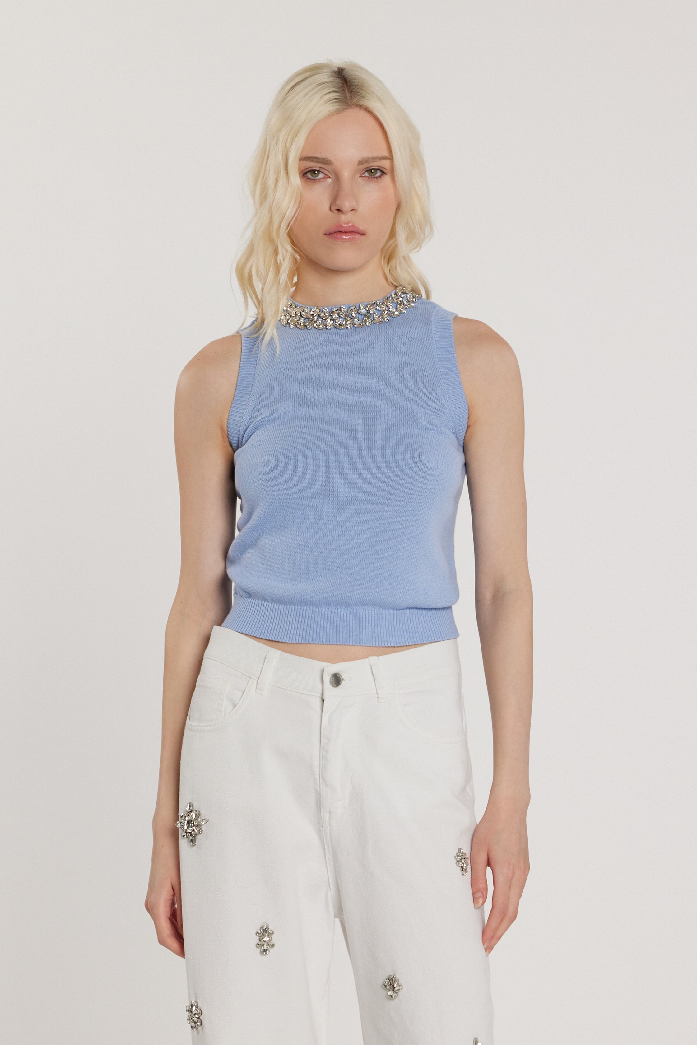 Canotta LAWRENCE smanicata con applicazioni gioiello più goccia più bottone