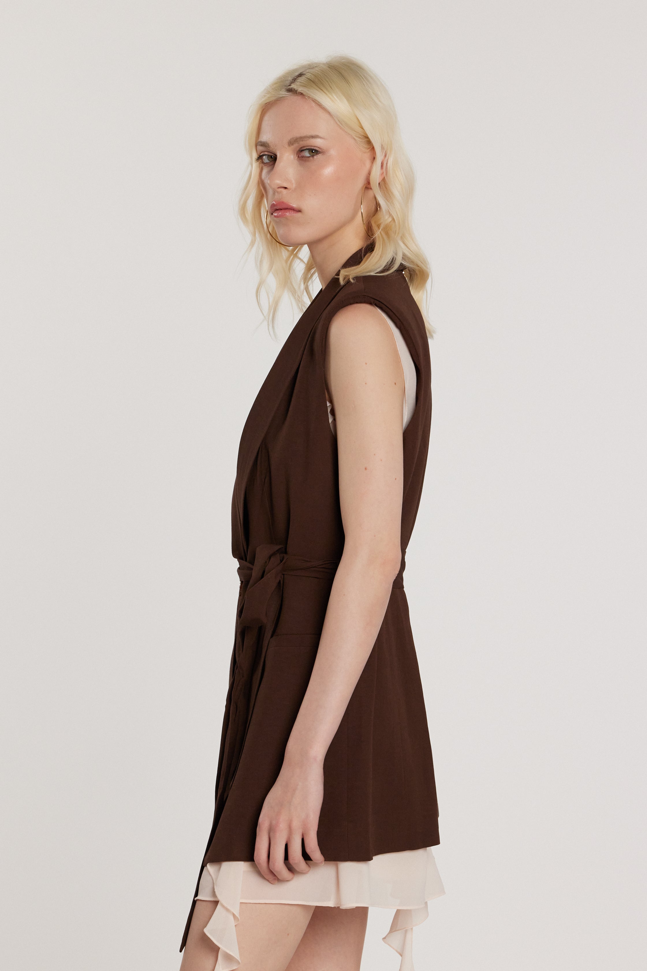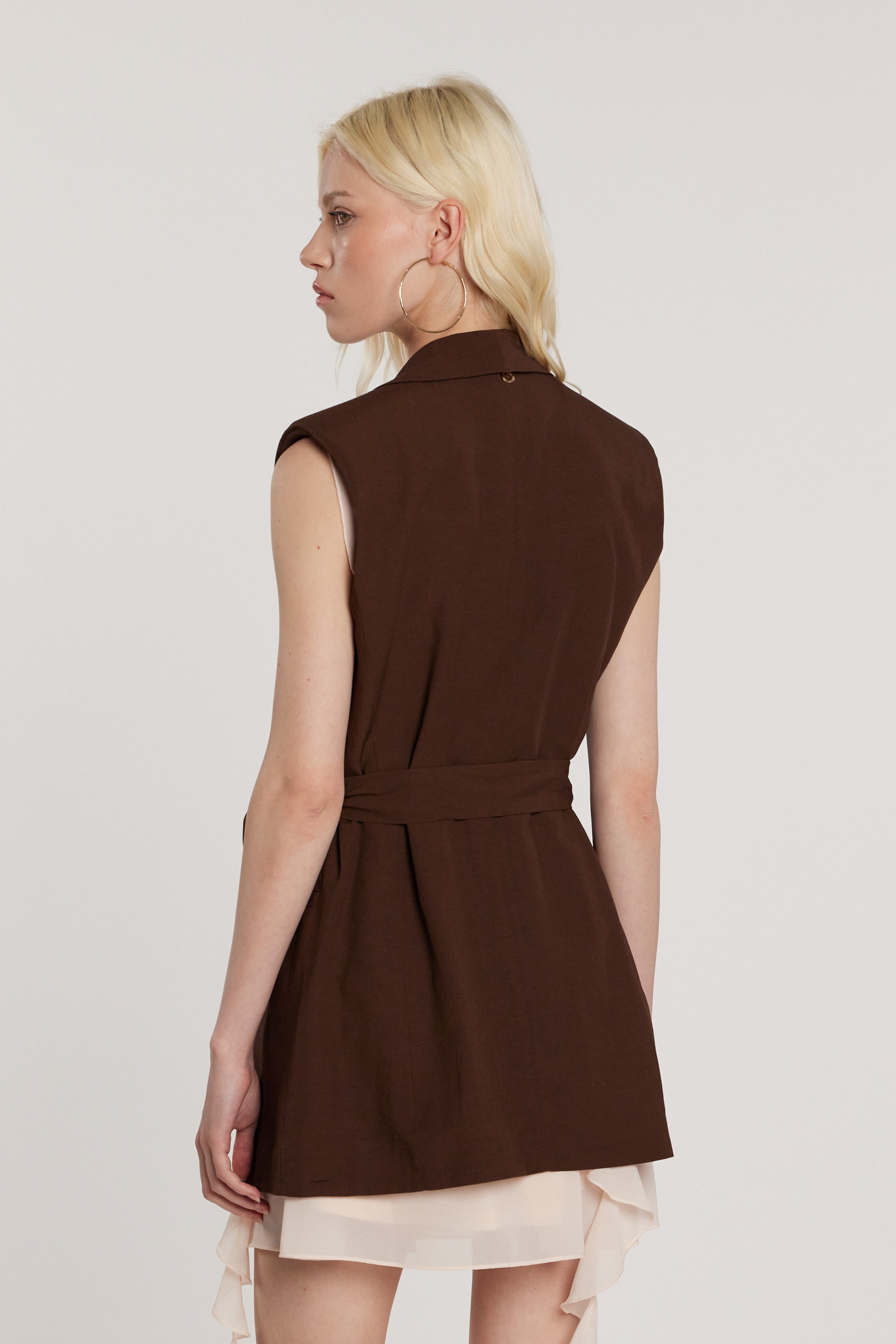 Giacca Bertiusa lunga smanicata con chiusura a un bottone, cintura coordinata e tasche, una proposta elegante e moderna pensata per slanciare la figura. La cintura definisce il punto vita con delicatezza, mentre la linea lunga dona un’allure raffinata e contemporanea, perfetta per layering chic.