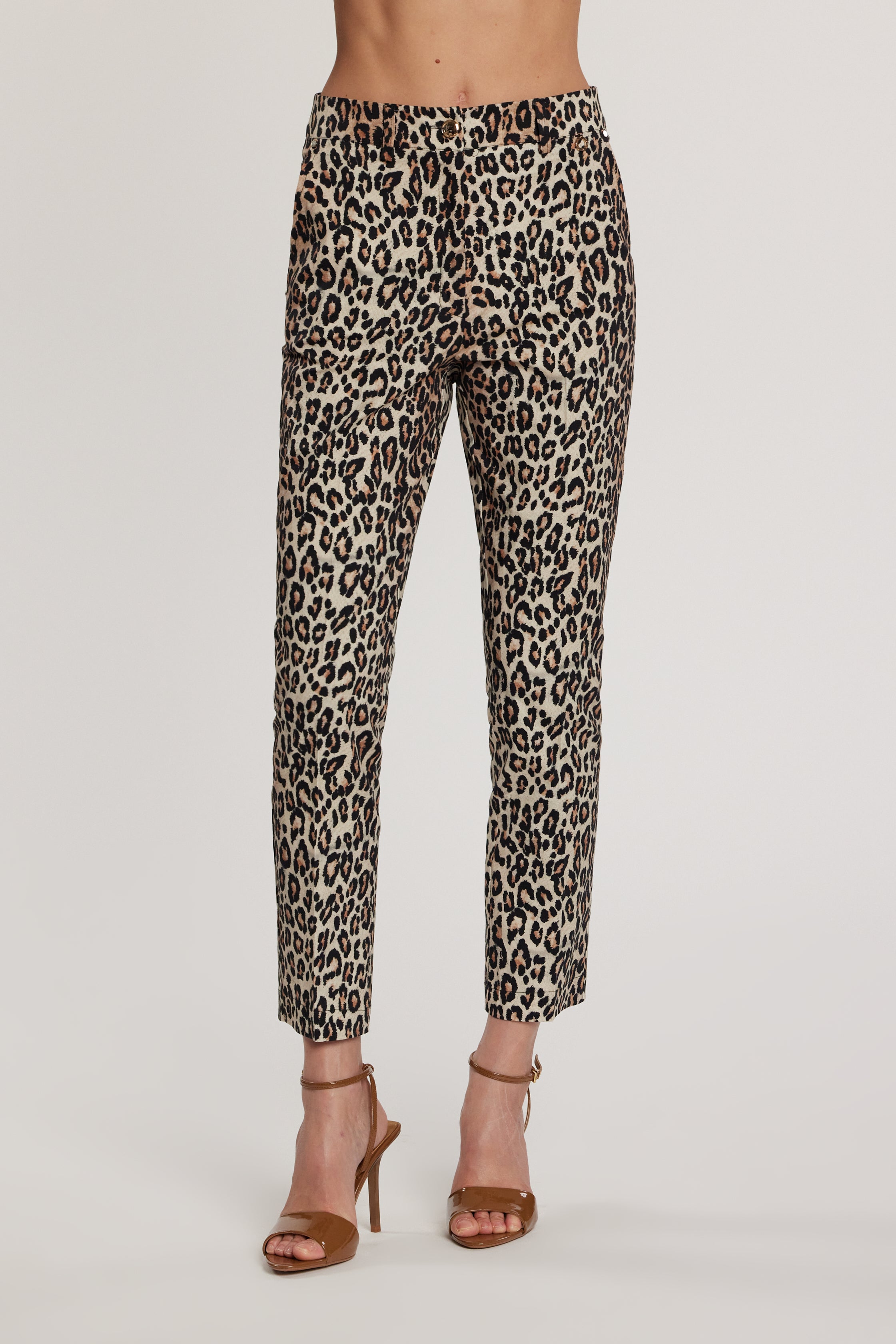 Pantalone Moug vita alta con tasche francesi in fantasia animalier, un modello deciso che unisce comfort e stile contemporaneo. La linea pulita valorizza la silhouette, mentre la fantasia dona un tocco selvaggio e sofisticato, ideale per look casual chic di forte impatto.