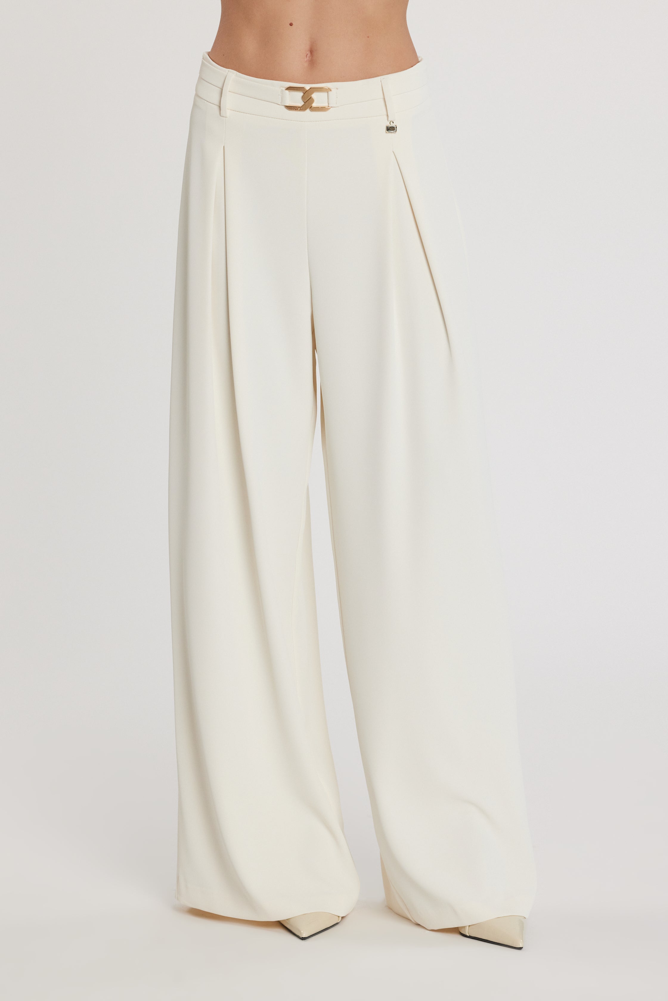 Pantalone ROJER vita alta palazzo con cintura più passante logo più pieghe