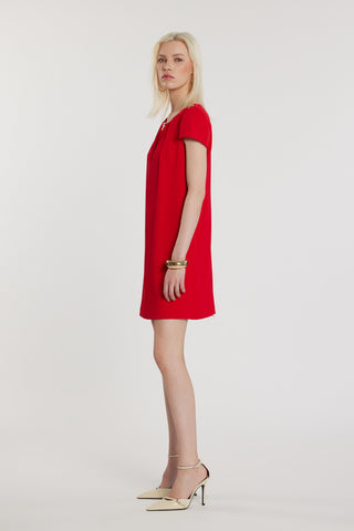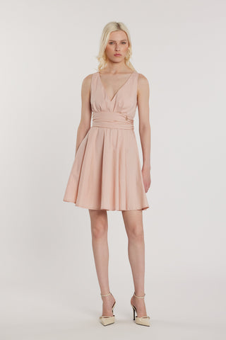 Abito COLLARD corto smanicato scollo a V con pieghe in vita più gonna a ruota