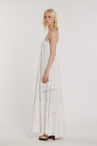 Abito CATHERY lungo smanicato con arricci più balze più inserti pizzo