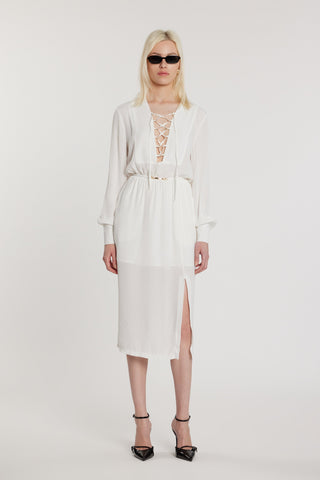Abito MARTINEZ midi maniche lunghe con stringhe scollo più elastico più cintura più spacco