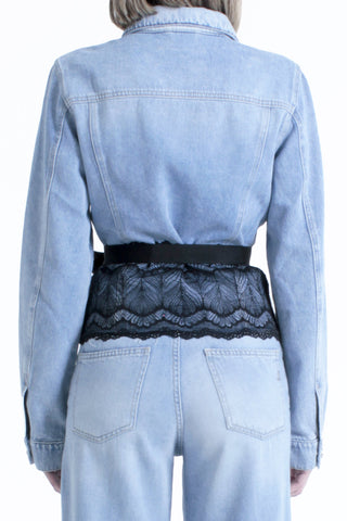 Giubbino WILLY_20 maniche lunghe con tasche più cintura più inserti pizzo slim fit denim blu