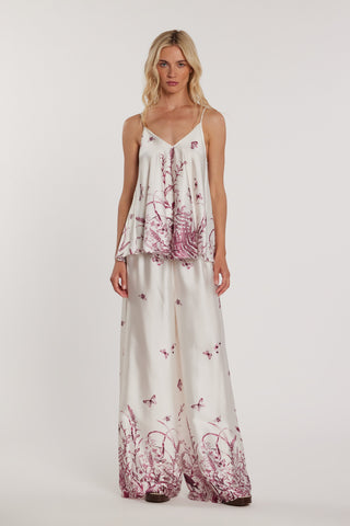 Pantalone CLAUDIETTE vita alta con dettaglio cintura più stampa logo all over