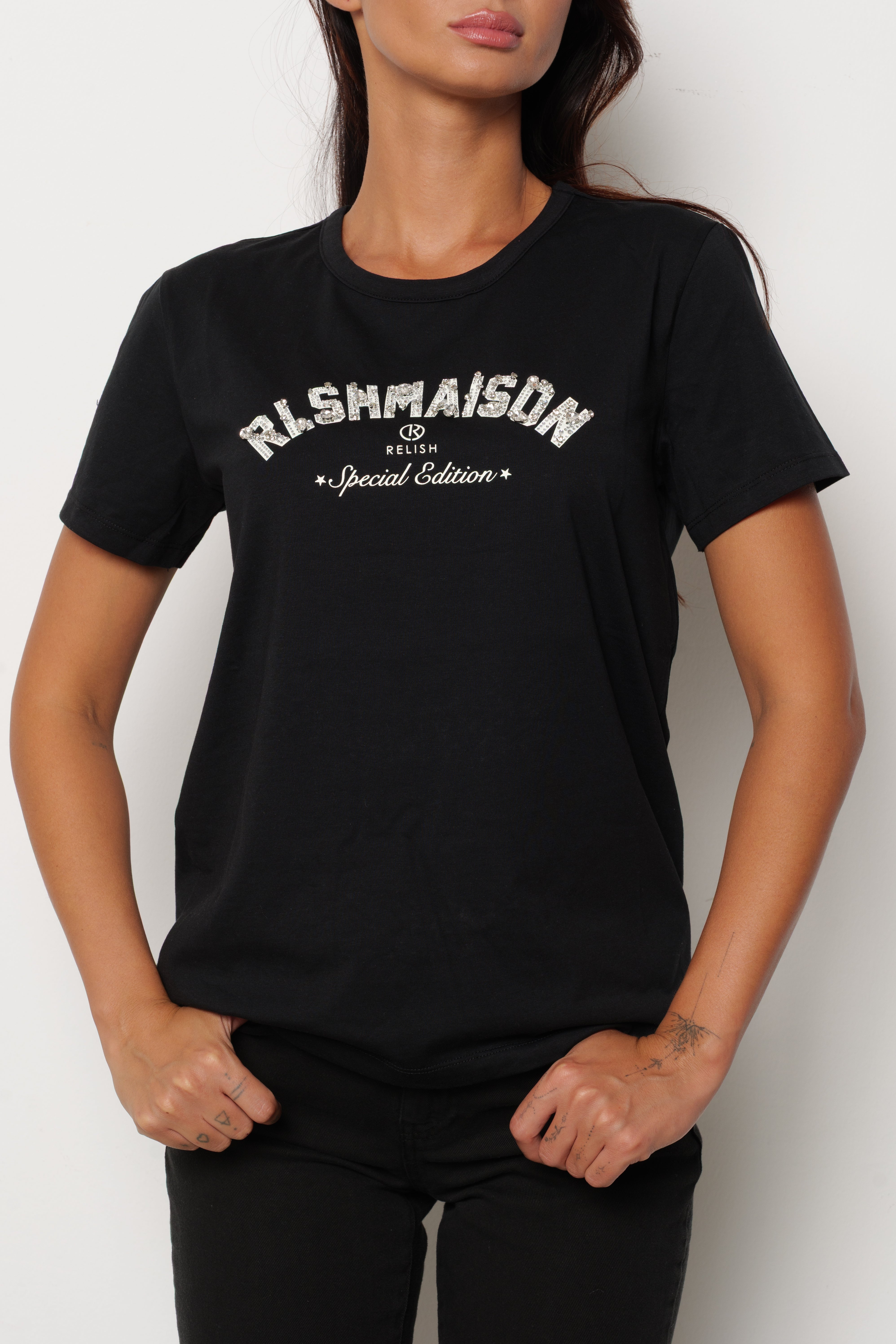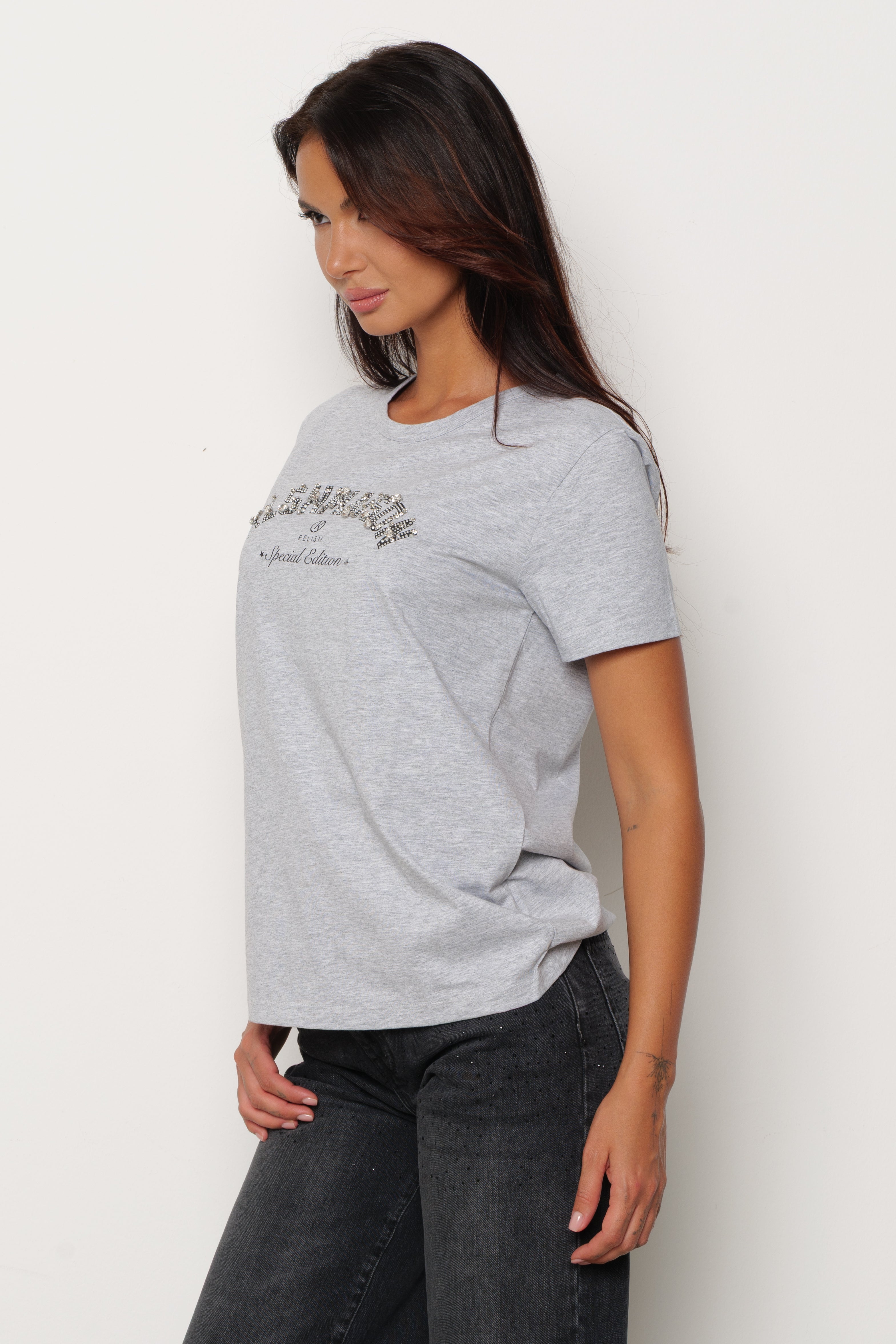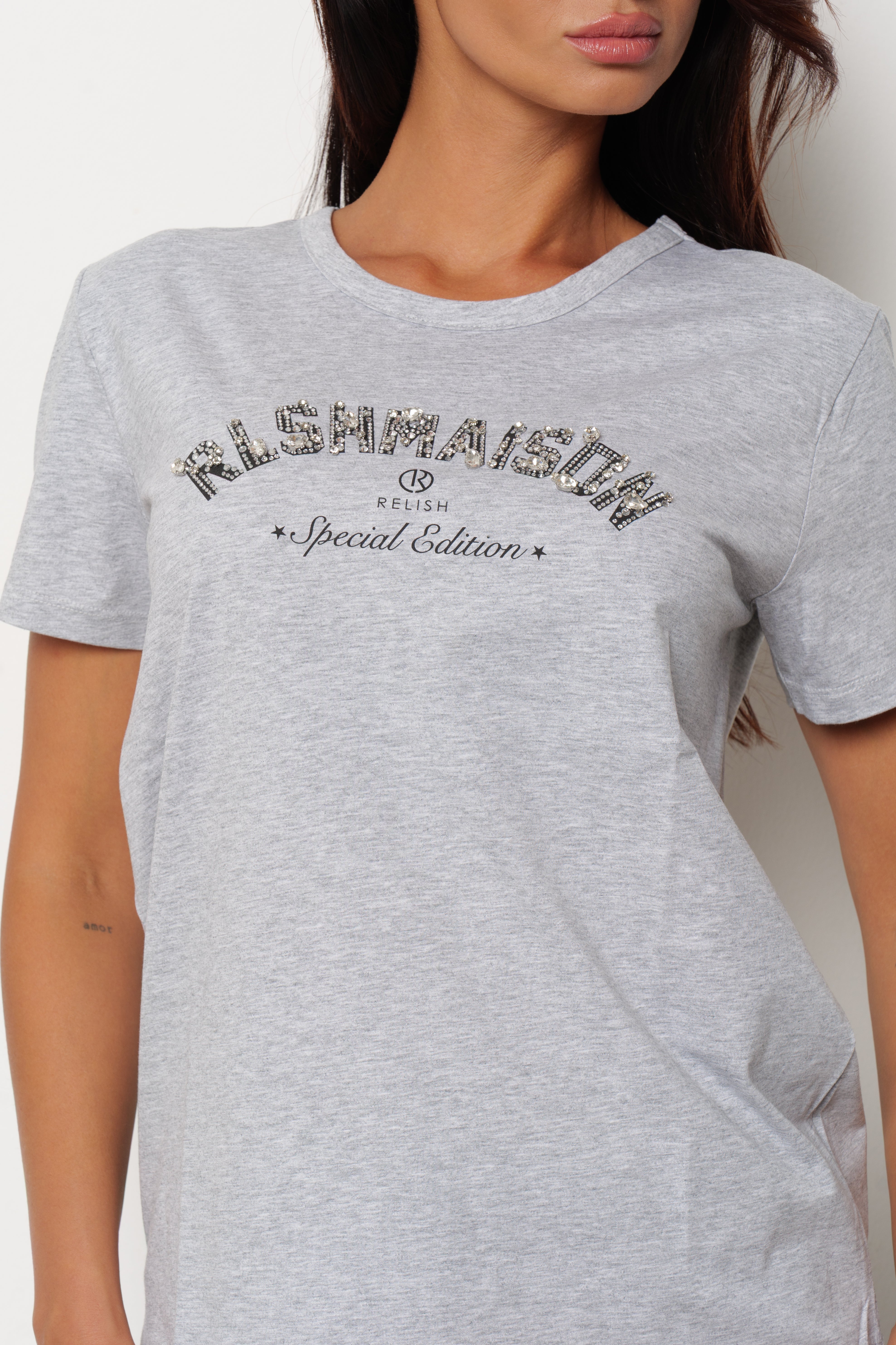 T-shirt REELS mezza manica con stampa più pietre più strass
