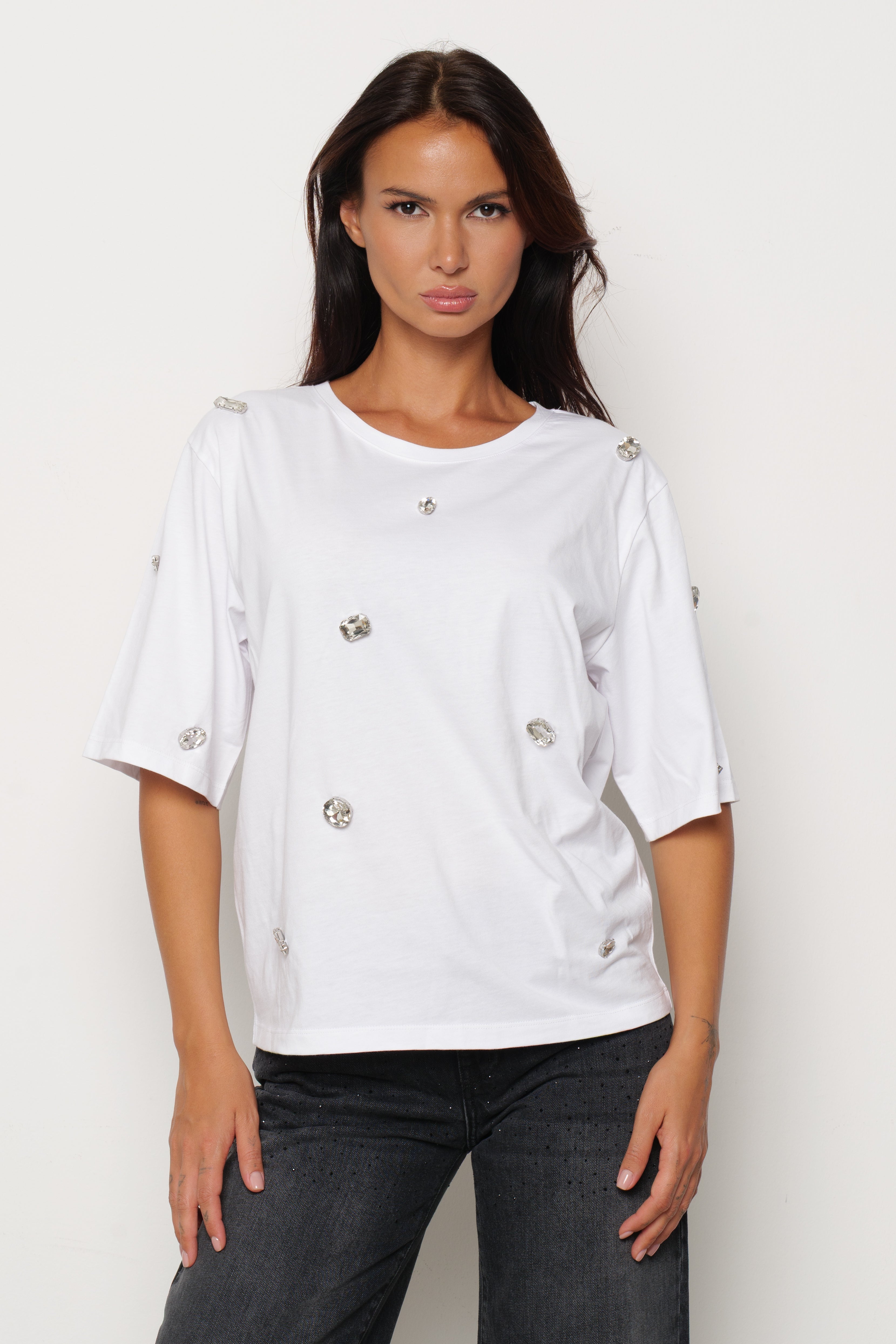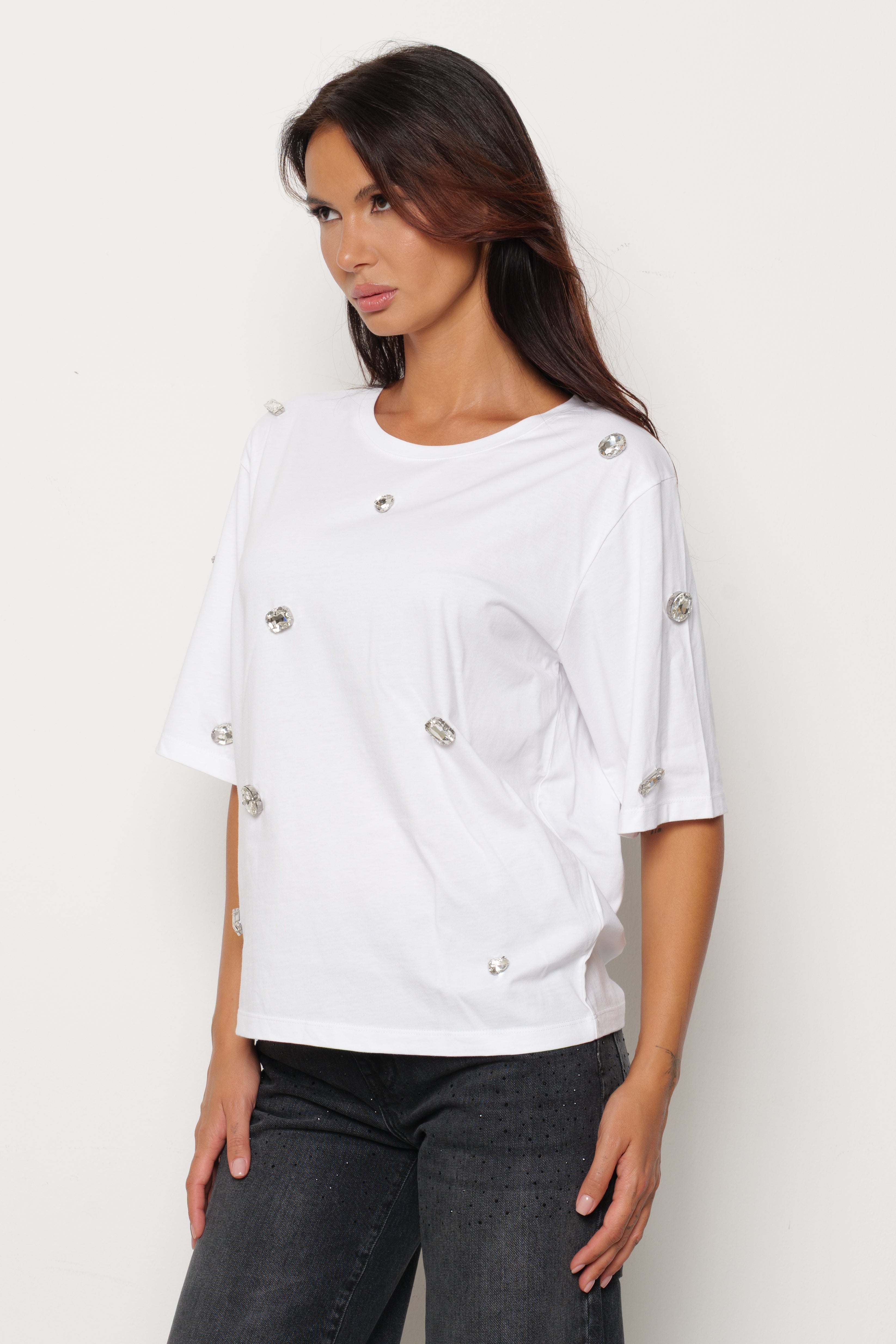 T-shirt ROMOALD mezza manica con pietre strass