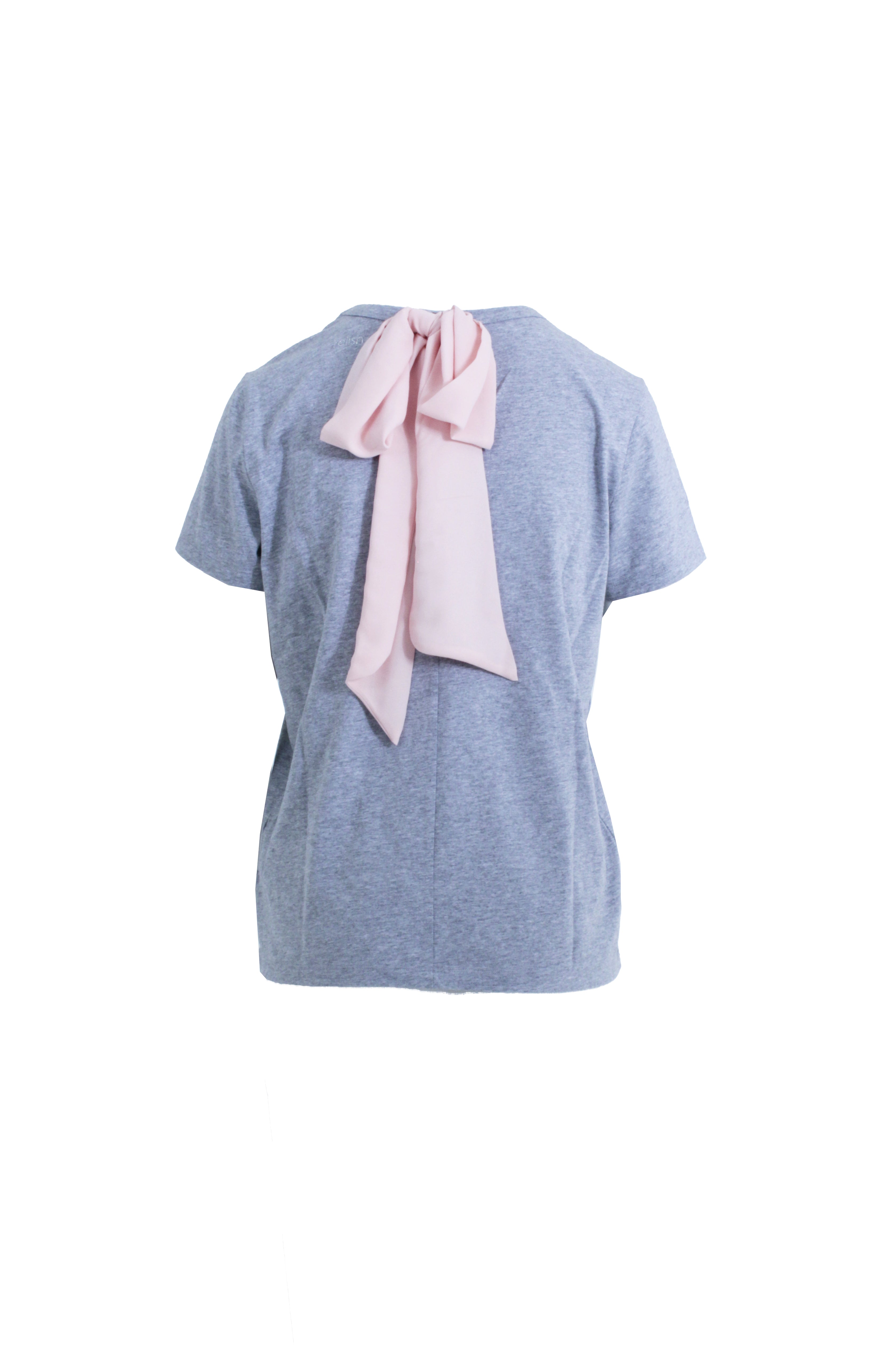 T-Shirt ANGELYNA maniche corte con applicazioni pietre più goccia sulla schiena più fiocco in georgette
