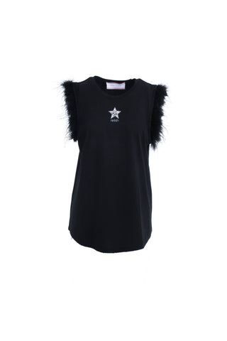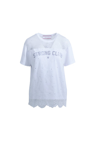 T-Shirt BELLUCCI maniche corte con inserto pizzo più strass più stampa