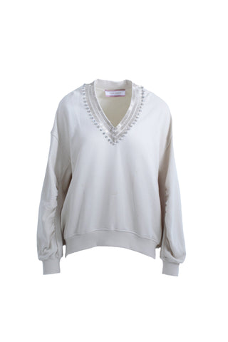 Felpa PFEIFFER maniche lunghe con arricciatura scollo a V con baguette più pietre