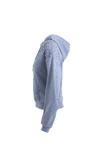 Felpa JOLIE maniche lunghe con arricciatura più cappuccio con coulisse più applicazioni pietre più tasca marsupio