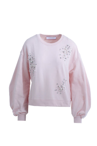 Felpa MICHELLE maniche lunghe a sbuffo più arricciatura con applicazioni perle più pietre