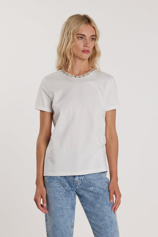 T-Shirt MONROEL maniche corte con baguette più applicazione effetto fiore