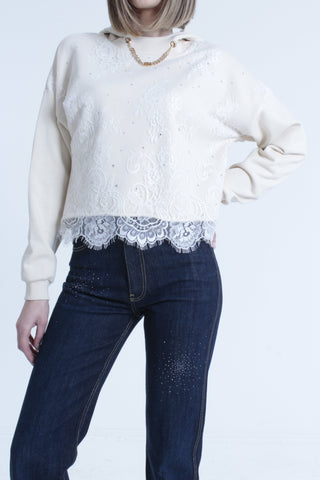 Felpa MONICAE maniche lunghe con cappuccio più catena logo più inserto pizzo con strass
