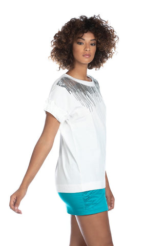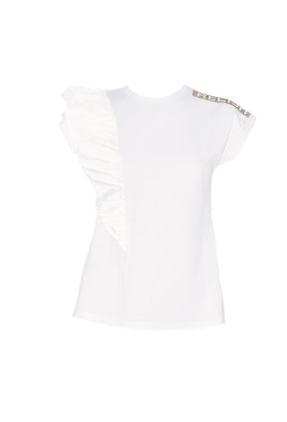 T-Shirt SHILER mezza manica aletta con applicazione strass più rouches tafta