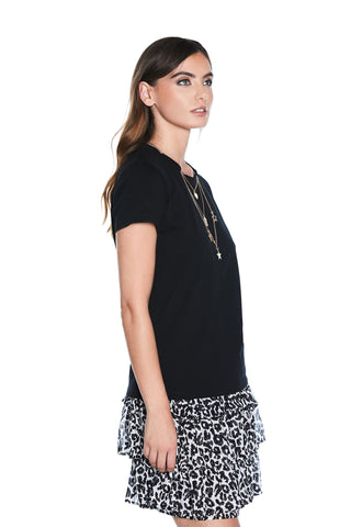 T-shirt ROMI mezza manica aletta scollo v con anello