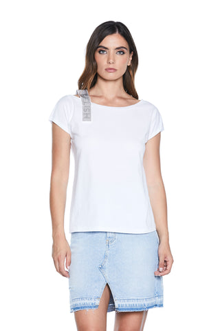 T-Shirt BRETIN mezza manica aletta scollo barca con spallina più strass