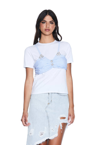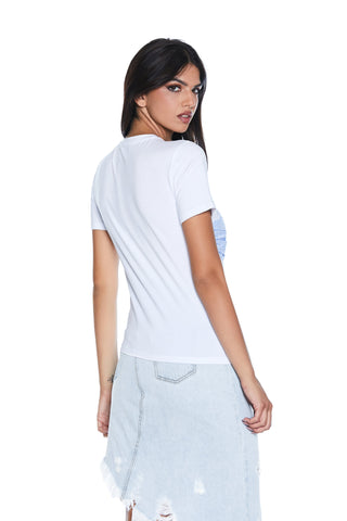 T-shirt CETUSIN mezza manica scollo v con laccio strass