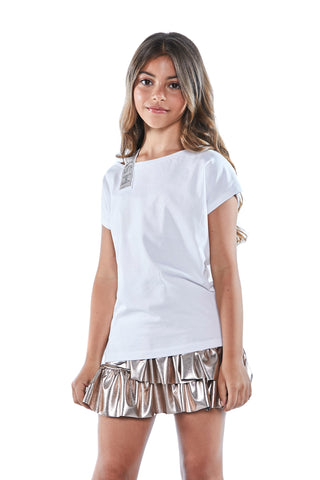 T-shirt SHILERINA mezza manica aletta con appl.strass più rouches tafta più stampa int.logo