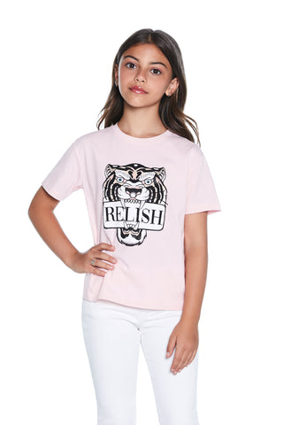 T-shirt AMMISSANIE mezza manica con stampa tiger più applicazione strass