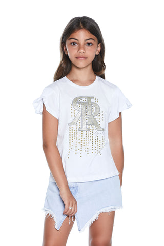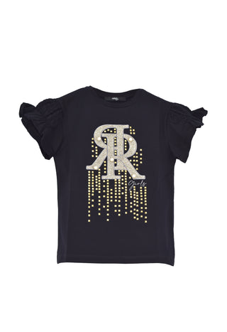 T-shirt RR mezza manica gale più arricci più stampa glitter rr più borchie più perle