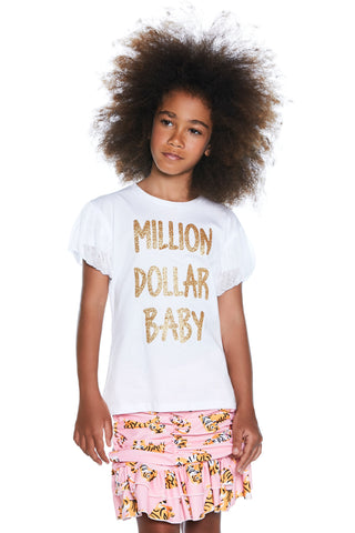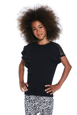 T-shirt TARNESA mezza manica tulle con scritta glitter