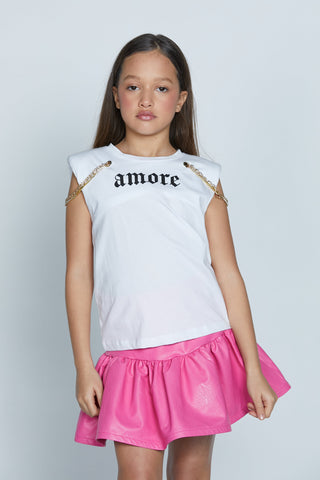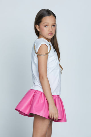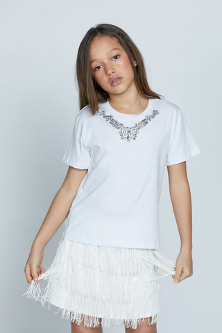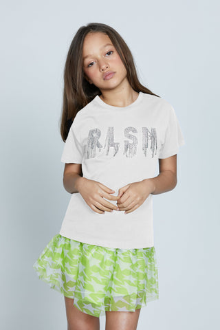 T-shirt EMIKO mezza manica con scritta rlsh strass più catene pendenti