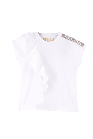T-shirt YED mezza manica con scritta relish strass più piume più gros spalla