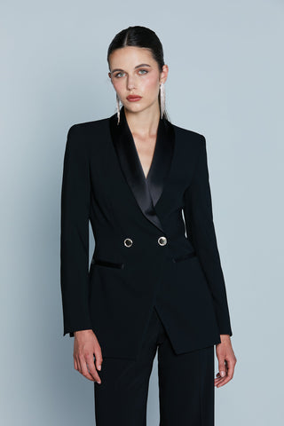 Giacca ERSILIA_A Corta M/L Bott.Gioiello Strass con Collo Revers Raso